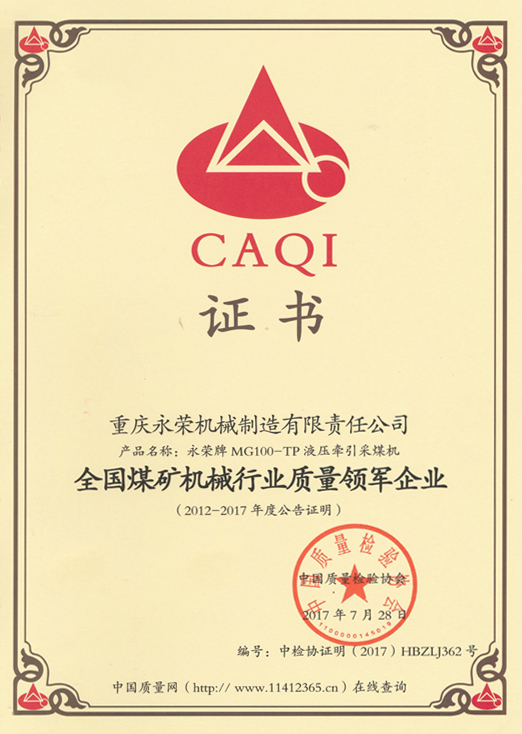 全國煤礦機(jī)械行業(yè)質(zhì)量領(lǐng)軍企業(yè)