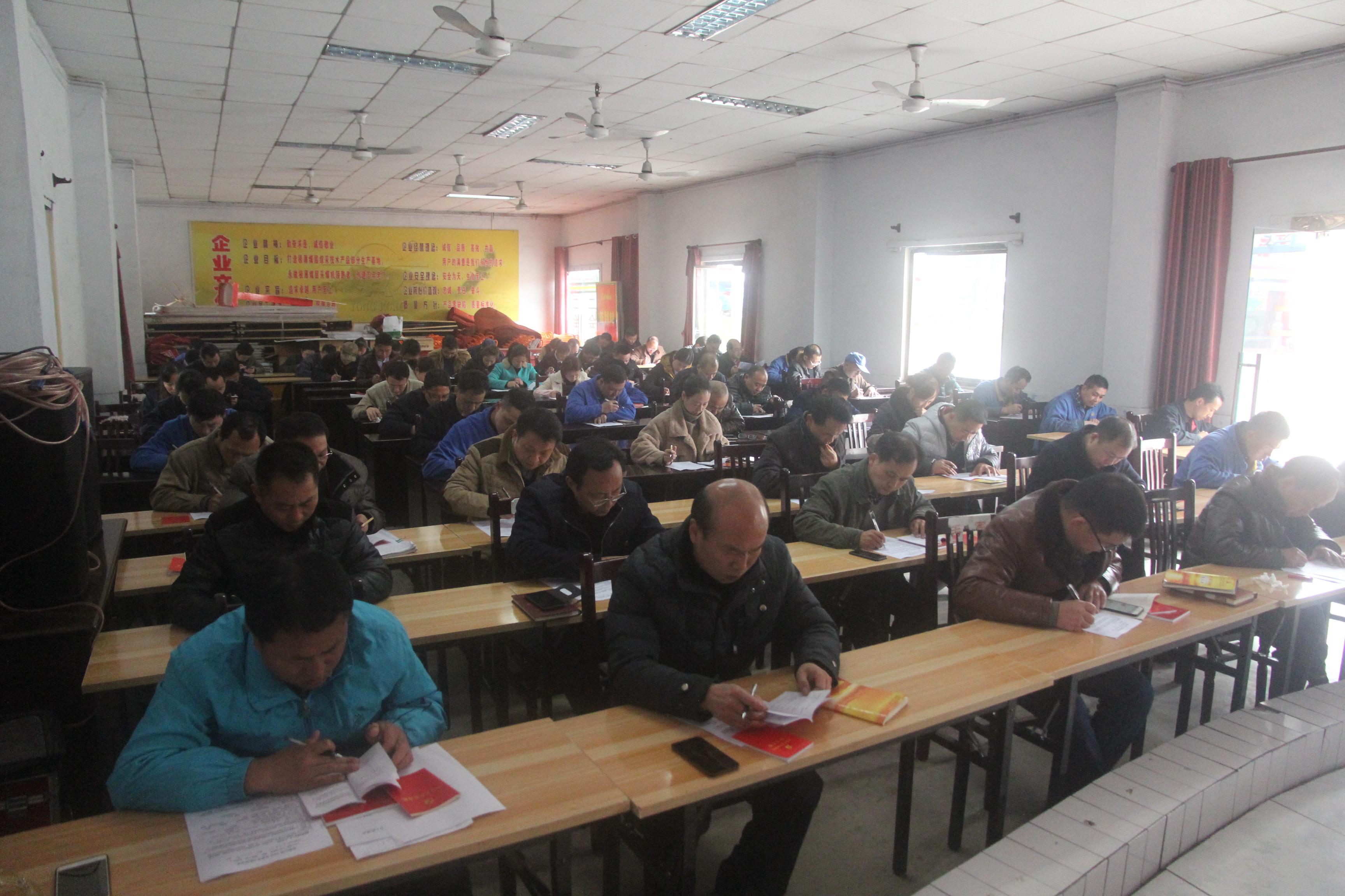 為檢驗(yàn)和鞏固一年來的理論學(xué)習(xí)效果,11月26日下午,永榮機(jī)制公司黨委在二會(huì)議室組織開展了2018年理論學(xué)習(xí)考試,共69名擴(kuò)大中心組學(xué)習(xí)成員、黨員、管理人員、班長(zhǎng)參加了此次考試,黨委書記蒲江平同志到現(xiàn)場(chǎng)監(jiān)督考試并作考前講話。