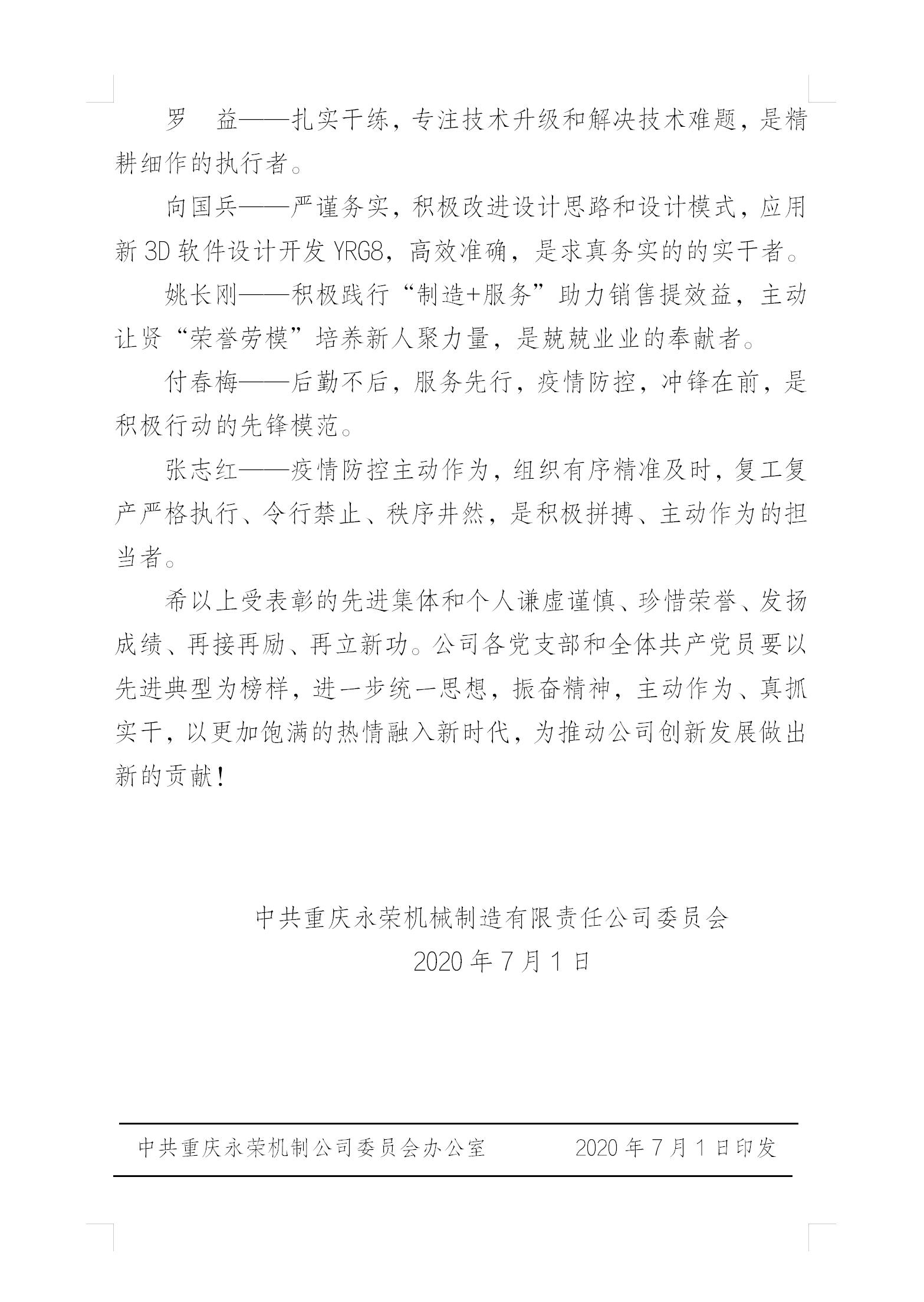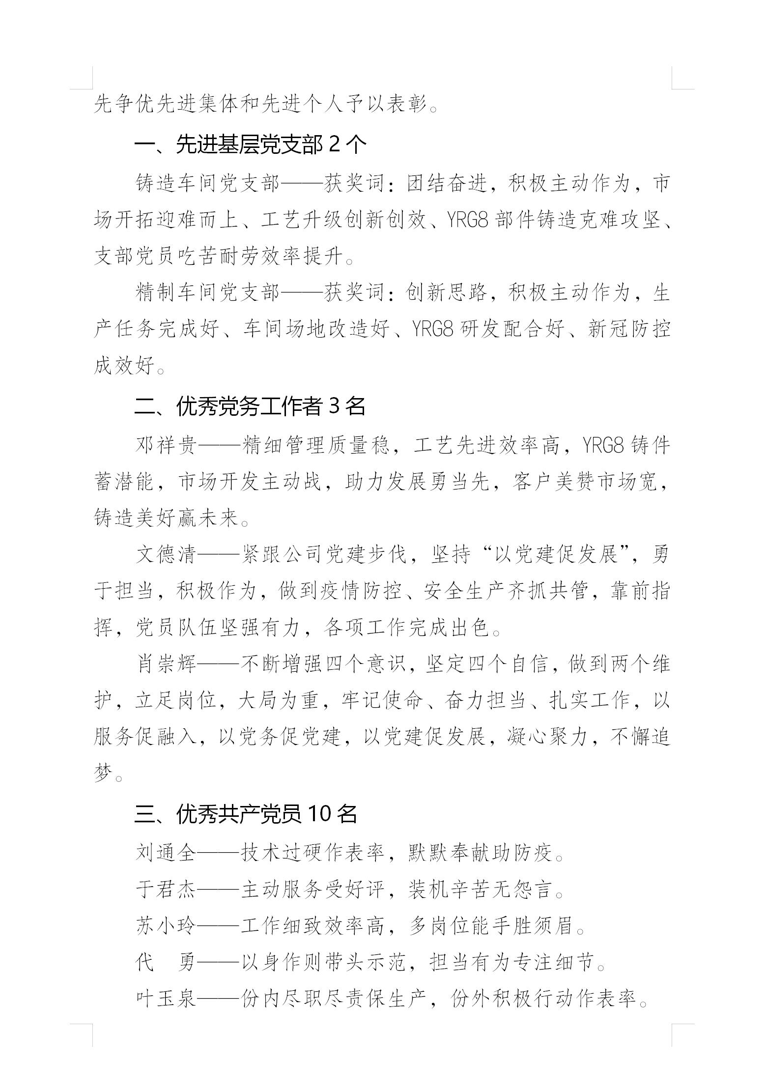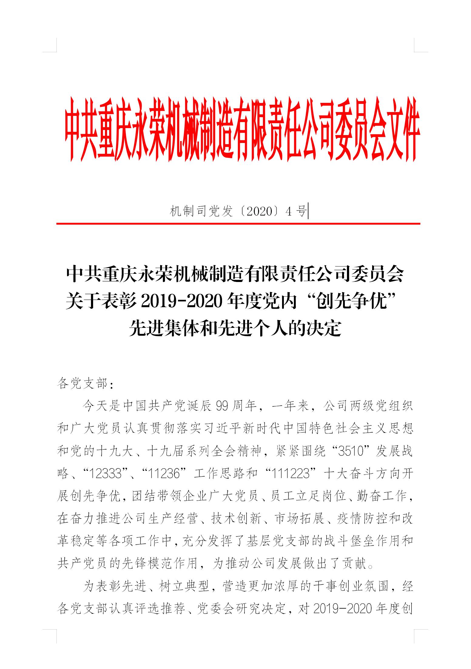 2019-2020年度黨內“創先爭優”先進集體和先進個人表彰決定